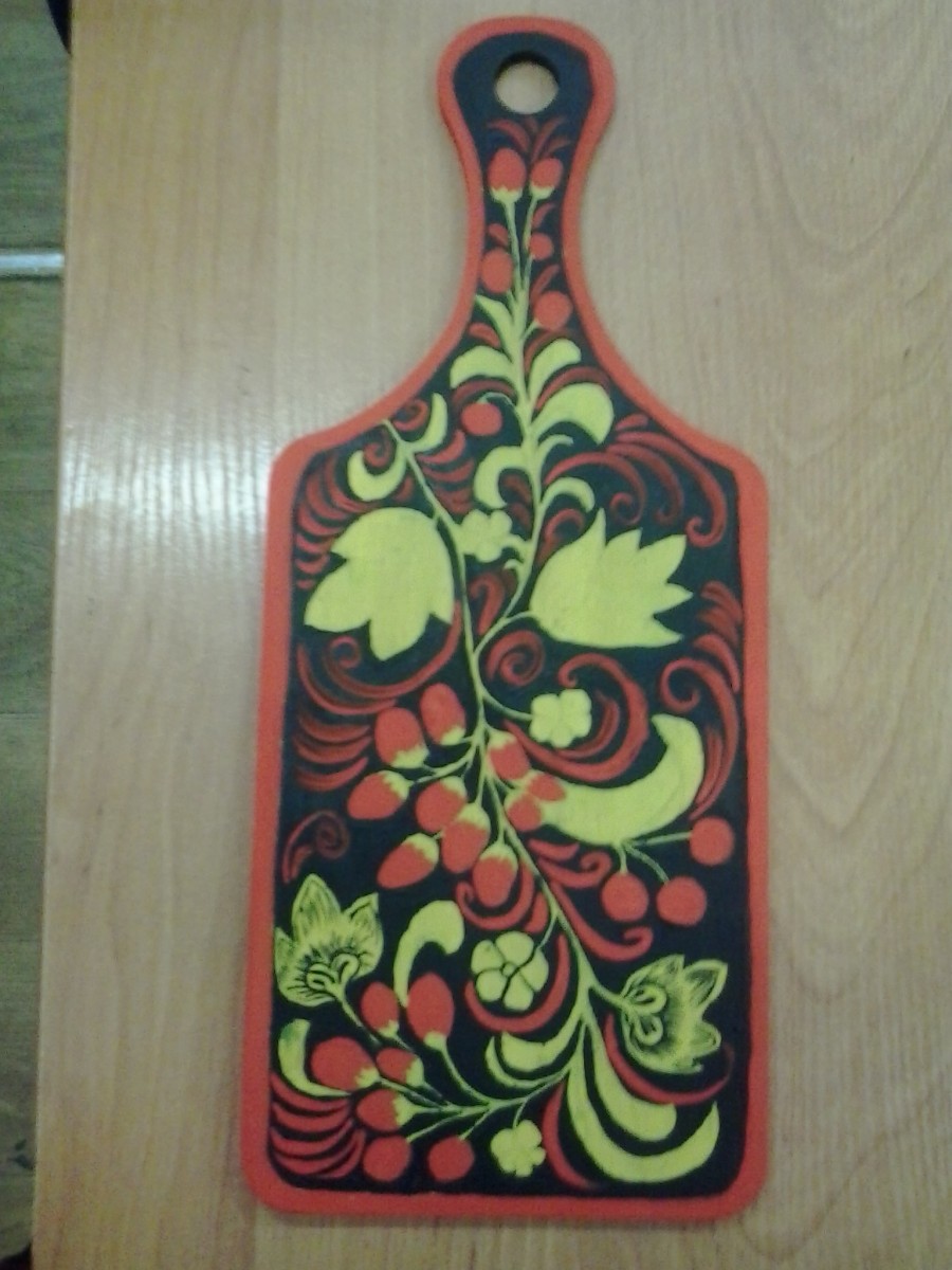 Мы с Вами завершили тему «Росписи по дереву» и работу над росписью разделочной доски. Спасибо всем за ваше старания и трудолюбие. Вот, что получилось у тех кто успел завершить работу. Молодцы!!!